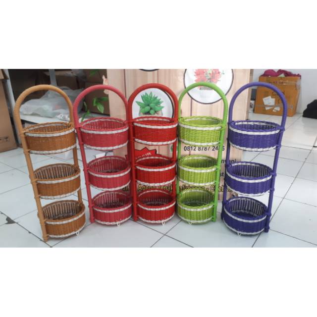 Tempat Rak bumbu bawang telur rotan sintetis 3 susun . Sumber Gambar : shopee.co.id
